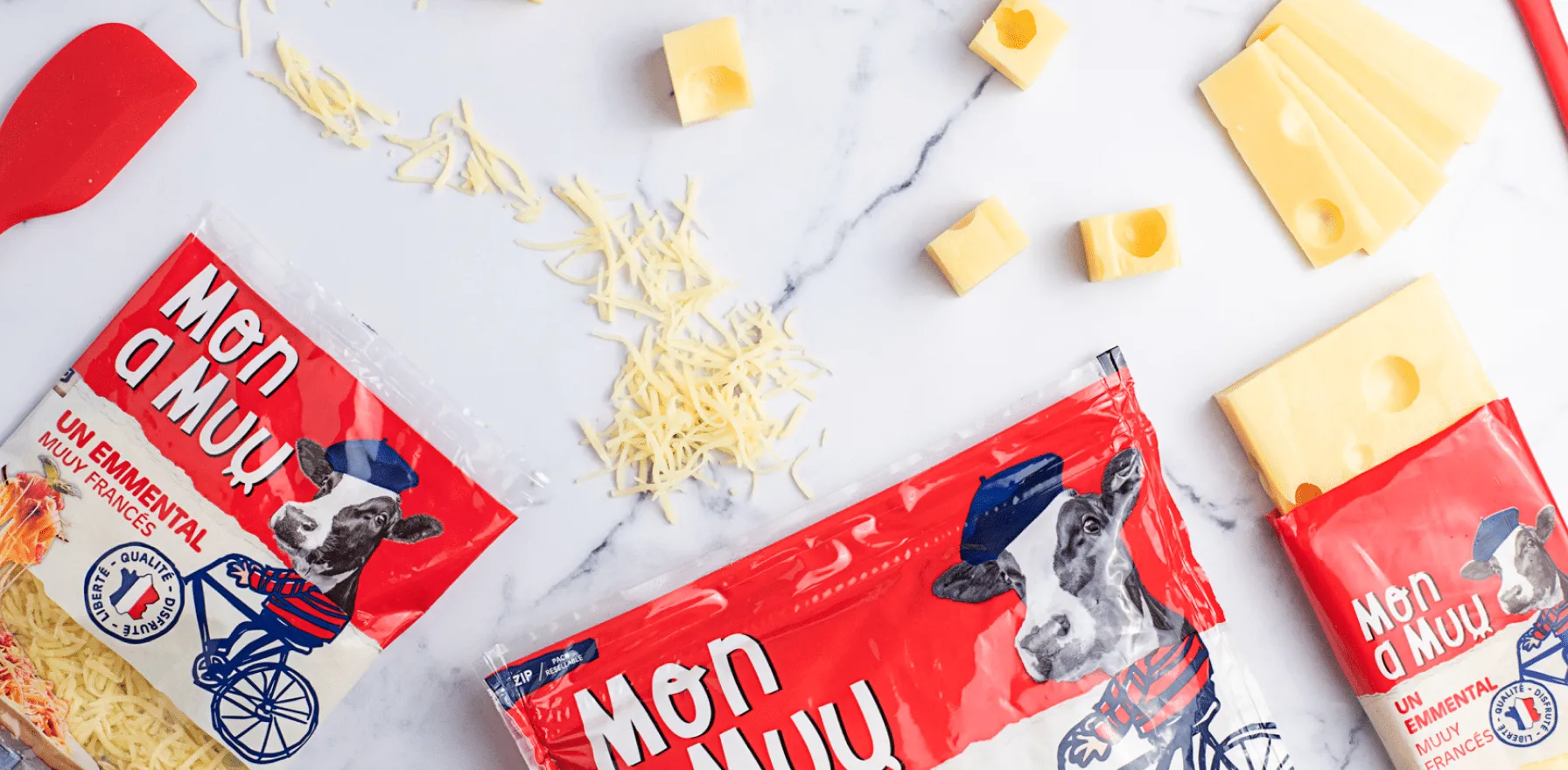 Like the very best French cuisine, our Emmental goes with everything while, at the same time, it’s inimitable thanks to its very special taste and texture. Try Mon a Muu with your dishes and discover why Emmental is a cheese renowned throughout the world.